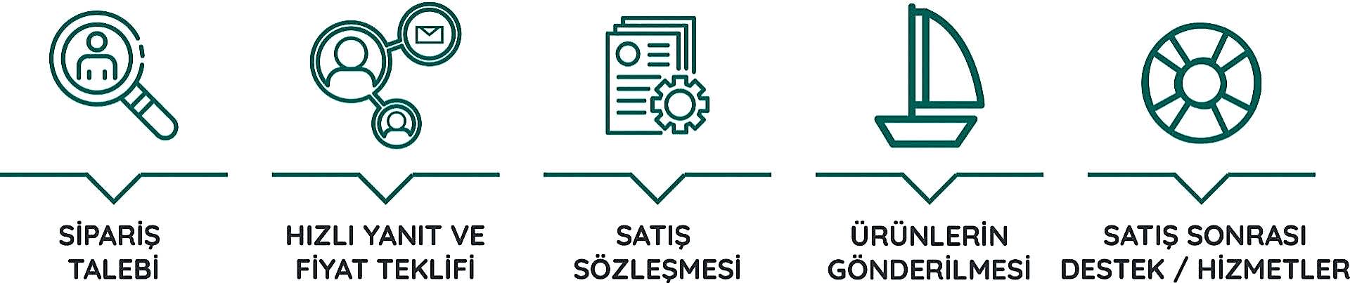 Operasyon sürecimiz sipariş talebi, hızlı yanıt ve fiyat teklifi, satış sözleşmesi, ürünlerin gönderilmesi ile satış sonrası destek ve hizmetlerden oluşmaktadır. Satış ekibimiz tüm KMC Group şirketlerindeki stokların detaylı araştırmasını yaparak bilgi verir ve gelen teklif taleplerini yirmi dört saat içinde yanıtlar. Müşterilerimizden gelen sipariş talepleri sistemimiz tarafından işleme alınır. Sipariş alındı teyidi müşterimize iletilir. Siparişinin işleme alınma sürecinde ortalama teslim süresi de müşterilerimize iletilmektedir. Müşterilerimizin onaylanan siparişlerinde satış sözleşmesi imzalayarak istenilen ürünlerin sevkiyatını en hızlı şekilde gerçekleştiriyoruz.